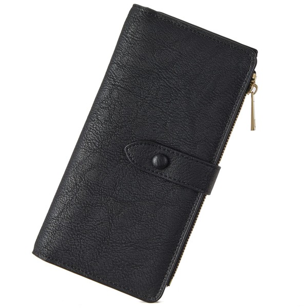 Telena RFID Wallet Women Leather Credit Card Holder Slim Bifold Wallet with Zipper Pocket (Classic, Black)