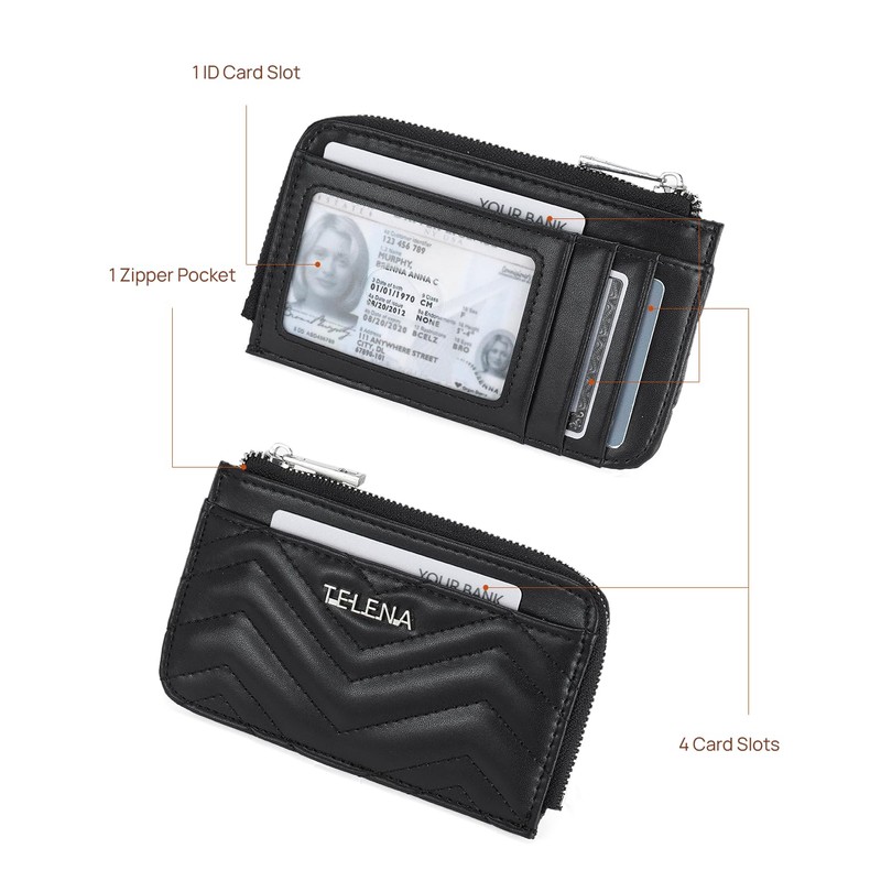 - Practical Design: The Telena credit card holder for women features 4 card slots, 1 ID card slot, 1 zippered pocket, and a silver metal keychain. It’s perfect for keeping everything organized and within reach for busy women