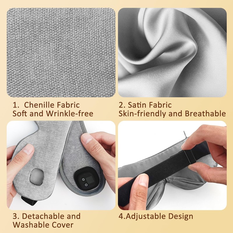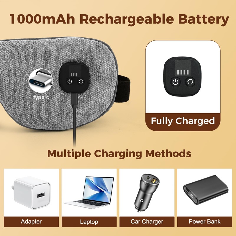 - [Cordless Design] This cordless eye mask is practical and portable. It is powered by a built-in 1000mAh battery, no need to microwave or connect to a power source for use