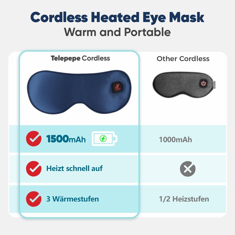 Telepepe Wireless Heated Eye Mask, Warm Eye Compress, 1500 mAh (Blue)