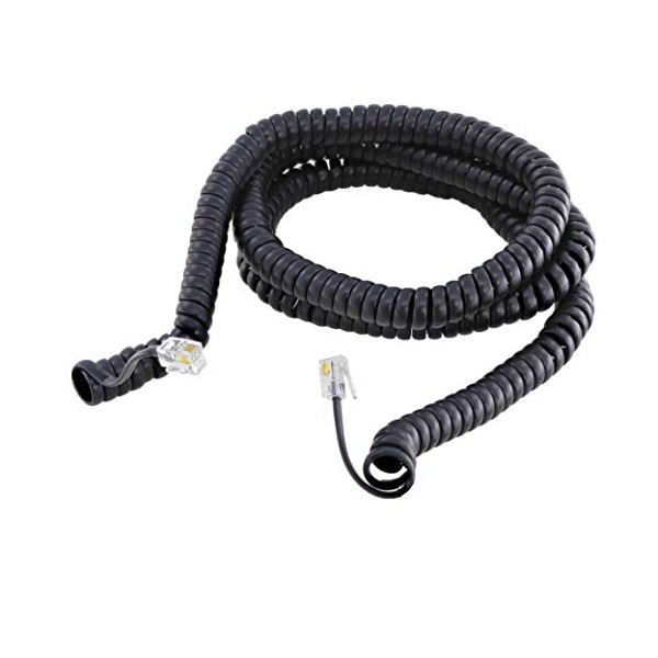 Telephone Cord, Phone Cord- Copper Coiled, Tangle-Free, Excellent Sound Quality, Handset Cable for Landline in Home or Office 25 Ft Black - By RamPro