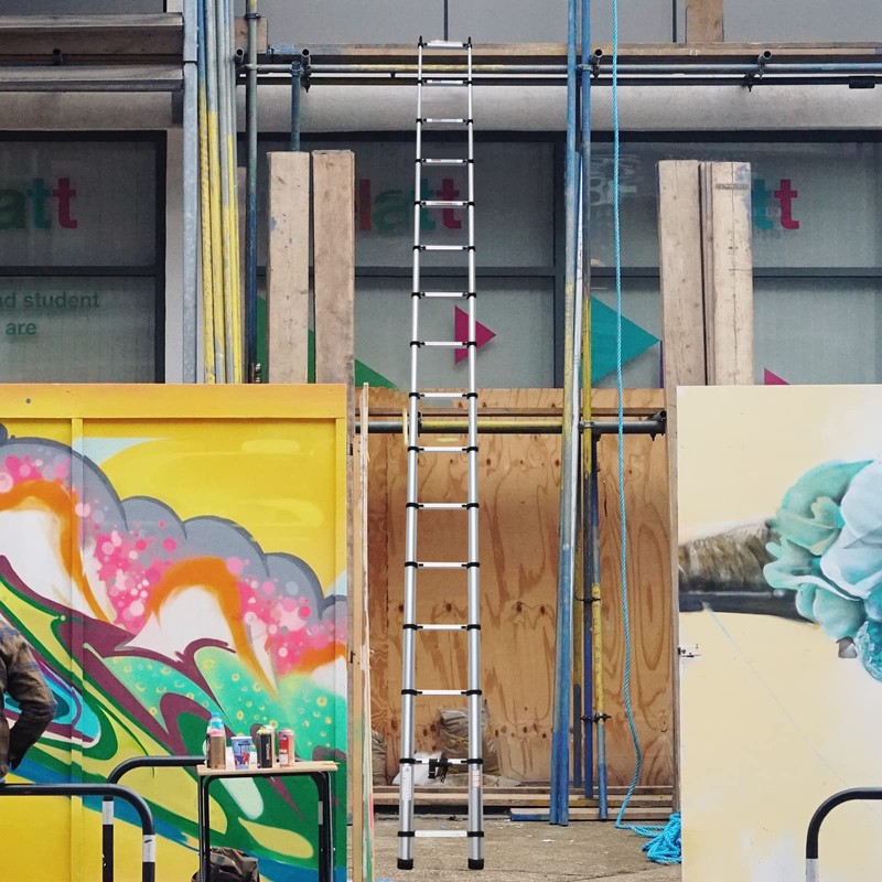 - The Telescopic ladder is made of high-quality aluminum alloy, light weight and easy to carry. corrosion-resistant, strong and durable. It is an ideal tool to help you draw walls, replace bulbs, clean windows, clean drains, repair roofs, etc. Suitable for home and business use. Telescopic ladder makes your life easier.