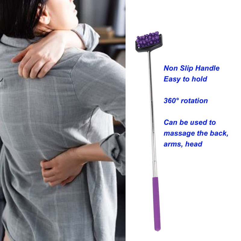 - RELIEF PAIN Retractable back massage roller with multiple massage heads, soft and smooth, stimulates acupuncture points, relieves muscle soreness and pain.