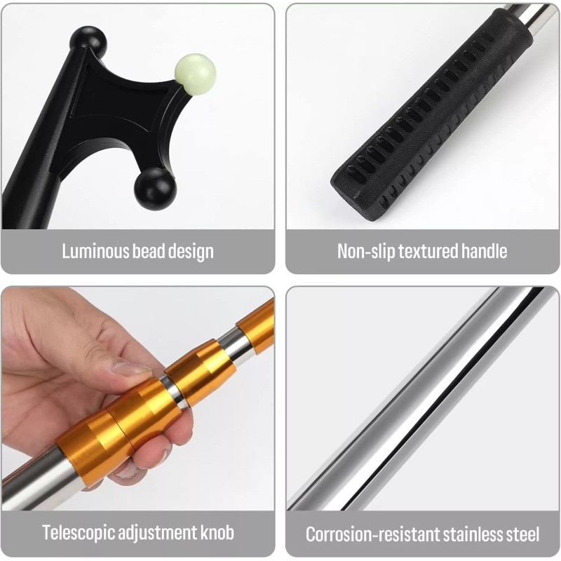 Telescopic Boat Hook for Docking Extension Pole Hook Push Stick for Boat Non-Slip Rubber Handle Durable Rust-Resistant Rust-Proof Multi-Function Replaceable Head Push Pole