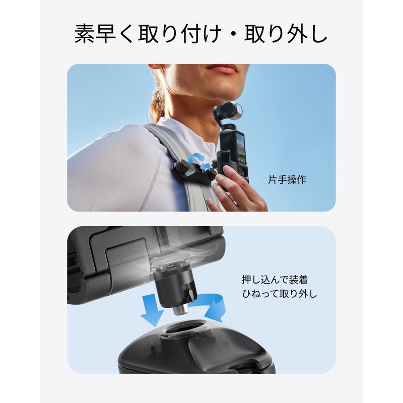 - Double Knob Safety Lock: Equipped with an adjustable double knob safety lock that allows the Pocket 3 to be securely secured even during intense exercise. The knob has a non-slip textured design for easy adjustment. The clip can easily hold rucksack of different thicknesses. (Maximum thickness when the shoulder belt is compressed: 0.1 inch (3.3 mm)