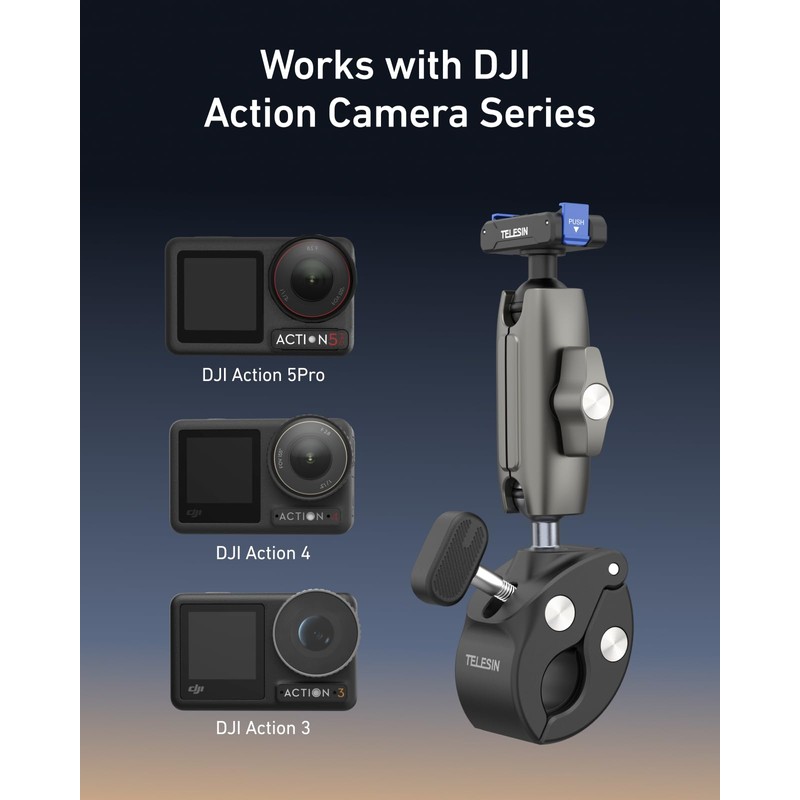 TELESIN Super Clamp Mount | Bike Mount for DJI Osmo 360/Action 5 Pro/Action 5/Action 4/ Pocket 3| Dual-Lock Magnetic Clips | 360°Rotation Ball Head | Fits 9-38mm Handlebar for Bike/Motorcycle