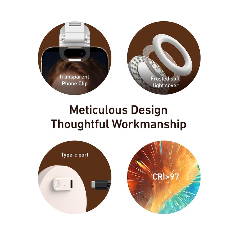 - Ring Selfie Light Built-in Makeup MirrorThe phone fill light has a built-in HD makeup mirror that can be used with the fill light for quick touch-ups on the go. It allows you to easily perform daily makeup looks and make quick adjustments anytime, anywhere. Slim and portable, it fits easily into a briefcase or handbag. Professional lighting for multiple scenarios: Perfect for remote Zoom meetings, live sales, beauty tutorials, TikTok and YouTube videos, and everyday makeup touch-ups.