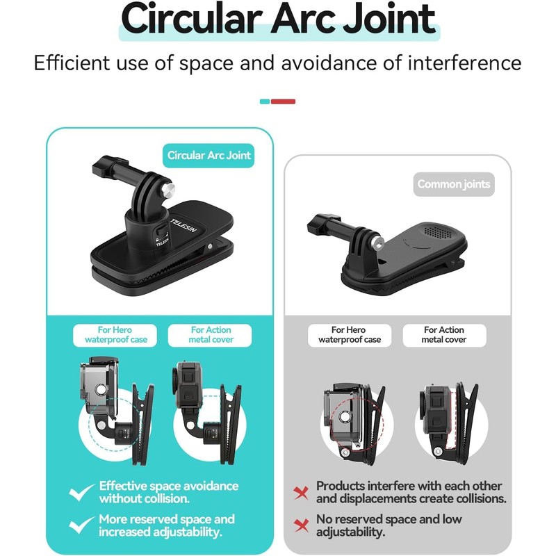 With the Telesin Backpack Clip, you're not just recording moments; you're crafting stories. Its 360° rotation and easy operation let you capture stunning panoramic shots and dynamic action sequences with ease. Whether you're hiking up a mountain or strolling through the city, your camera will be securely positioned to document every second of your journey.