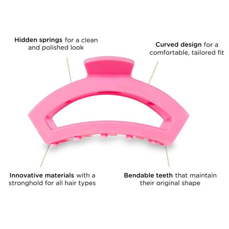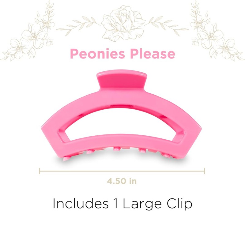 TELETIES - Large Open Claw Clip - Strong Grip, Bendable Teeth, Comfortable Cutout Design - Ideal for Long, Thick, Curly, or Wavy Hair - For All Hair Textures - Spring Collection - Peonies