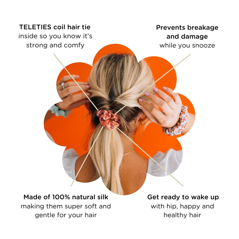 - SILKY SOFT - A scrunchie that is safe to sleep in and looks stunning with your day-to-day style. Our TELETIES Silk Scrunchies are made of 100% natural silk, making them super soft and gentle for your hair. It also helps prevent breakage and damage while you snooze.
