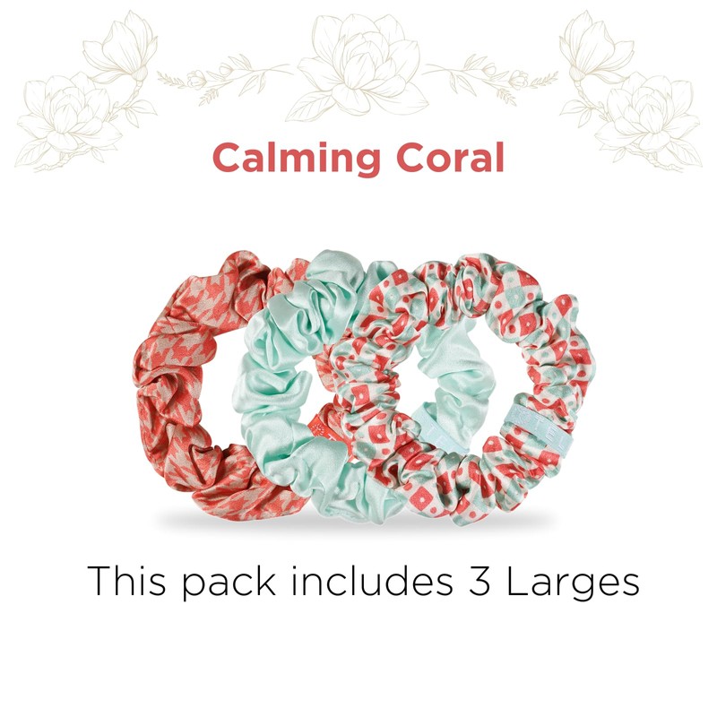 TELETIES - Large Scrunchie - Ideal for Thick Hair - 100% Natural Silk Hair Scrunchie - Soft & Gentle - Prevents Breakage & Damage - Safe for Sleep - For All Hair Textures - Calming Coral