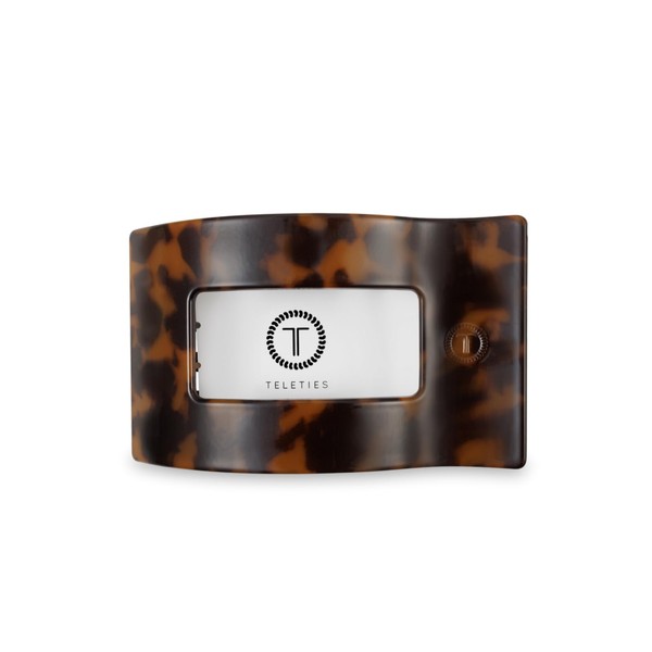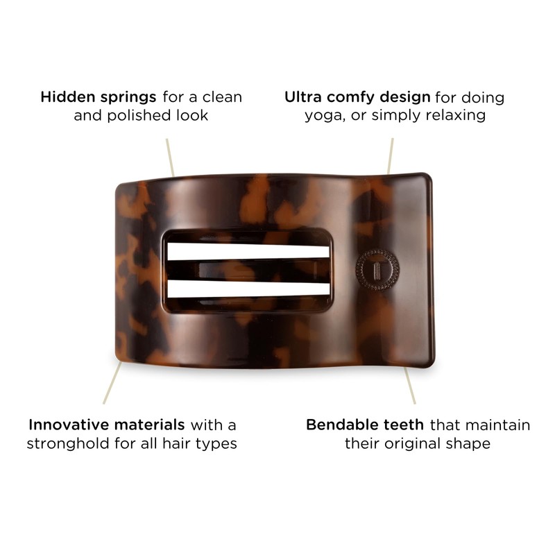 TELETIES - Medium Flat Rectangle Clip - For Medium-Thick Hair - For Lounging, Travel, Yoga, & More - Strong Grip, Bendable Teeth, Comfortable Lay-Back Design - All Hair Textures - Tortoise