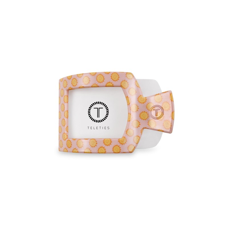 TELETIES - Small Flat Square Clip - For Lying Down, Yoga, Driving & More - Strong Grip, Bendable Teeth, Comfortable Curved Design - Ideal for Thin-Medium Hair - Spring Collection - Sunny Days Ahead