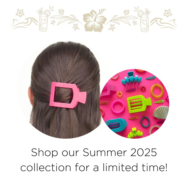 TELETIES - Small Flat Square Clip - Ideal for Thin-Medium Hair - For Lying Down, Yoga, Driving & More - Strong Grip, Bendable Teeth, Comfortable Curved Design - For All Hair Textures - Tropical Punch