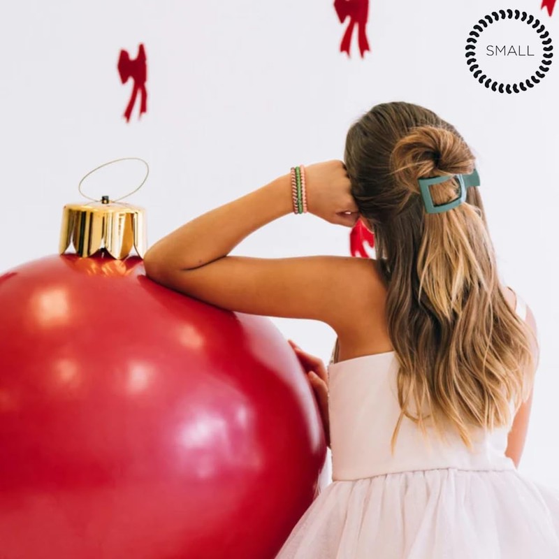 TELETIES - Small Flat Square Clip - Strong Grip, Bendable Teeth, Comfortable Curved Design - For Lying Down, Yoga, Driving & More - Ideal for Thick Hair -For All Hair Textures - Mistletoe