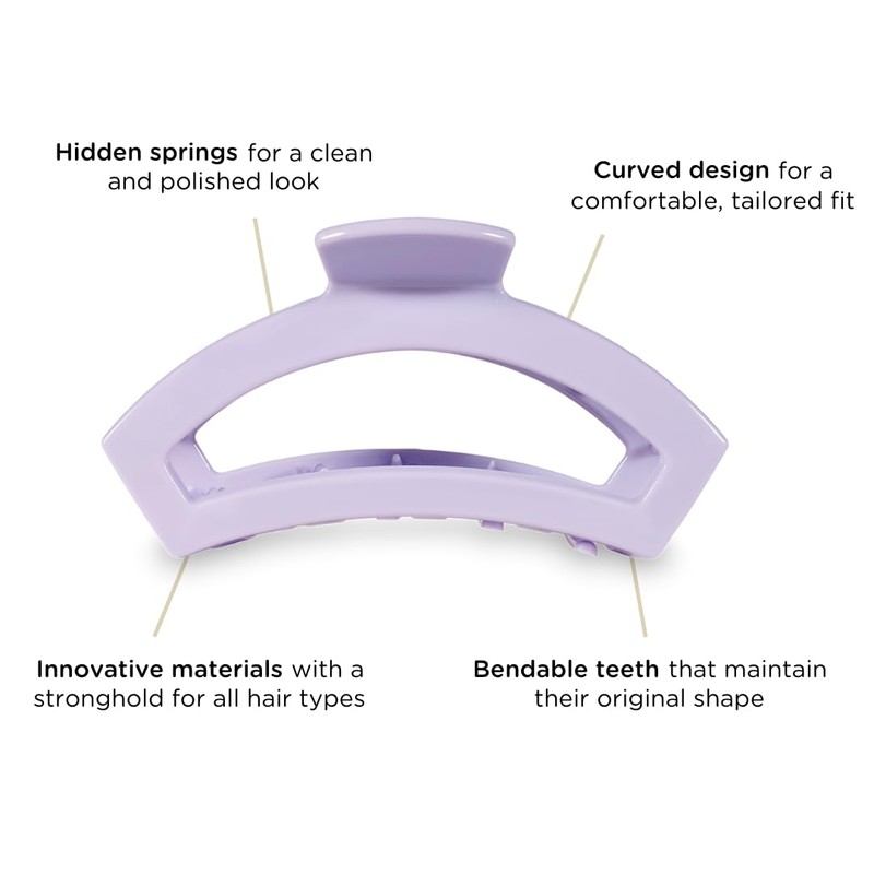 TELETIES - Tiny Open Claw Clip - Strong Grip, Bendable Teeth, Comfortable Cutout Design - Ideal for Long, Thick, Curly, or Wavy Hair - For All Hair Textures - Spring Collection - Lilac