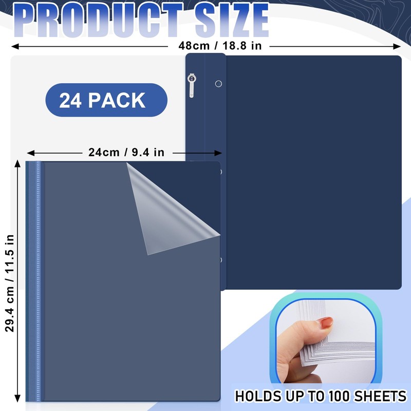 Teling 24 Pcs Clear Front Report Covers with 3 Prongs Presentation Folders Plastic Resume Portfolio Folder Report Folder Letter Size Presentation Binder for Paper Document School Office (Navy Blue)