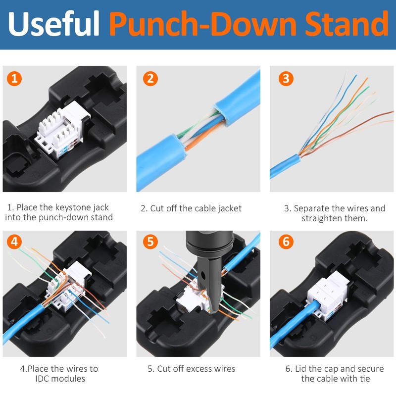 - Package Includes: you will receive 75 pieces compatible with Cat6 keystone jack RJ45 and 1pieces punch-down stand, enough quantity to satisfy your different needs