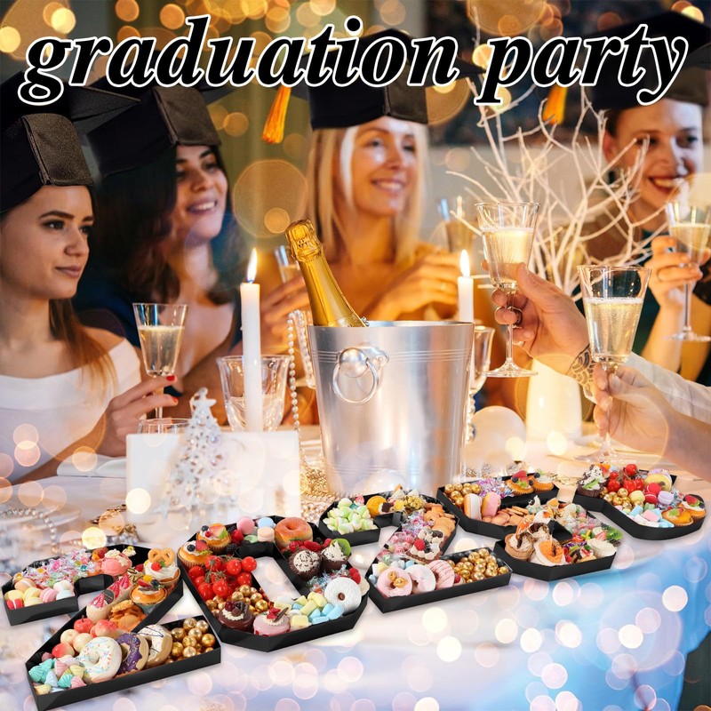 - Grad Party Charcuterie: 2025 graduation hat cardboard numbers fillable for food are ideal as table decor or as decorative boxes for snack dishes on grad bashes, celebrations, parties, and more important day celebrations; We have several colors for you to choose from, and we have combined them for you, will definitely make your party eye catching and more attractive