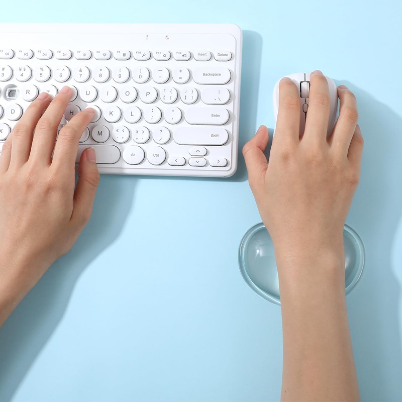 - 【Precise Decompression】The 0.8-inch thick gel wrist pad is filled with silicone gel, which fits the natural curvature of the wrist. The slightly lower curved design in the middle of the gel wrist rest for keyboard and mouse guides the hand to maintain the correct posture, effectively relieves the pressure of the carpal tunnel, and reduces the soreness and stiffness caused by long-term use of the mouse