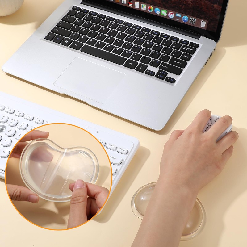 Two-piece gel wrist pad, 0.8-inch ergonomic design, high-quality silicone, washable, precise pressure dispersion wrist guard, multi-scene adaptation to office games and learning, flexible splicing and disassembly, long-lasting support for hand health.