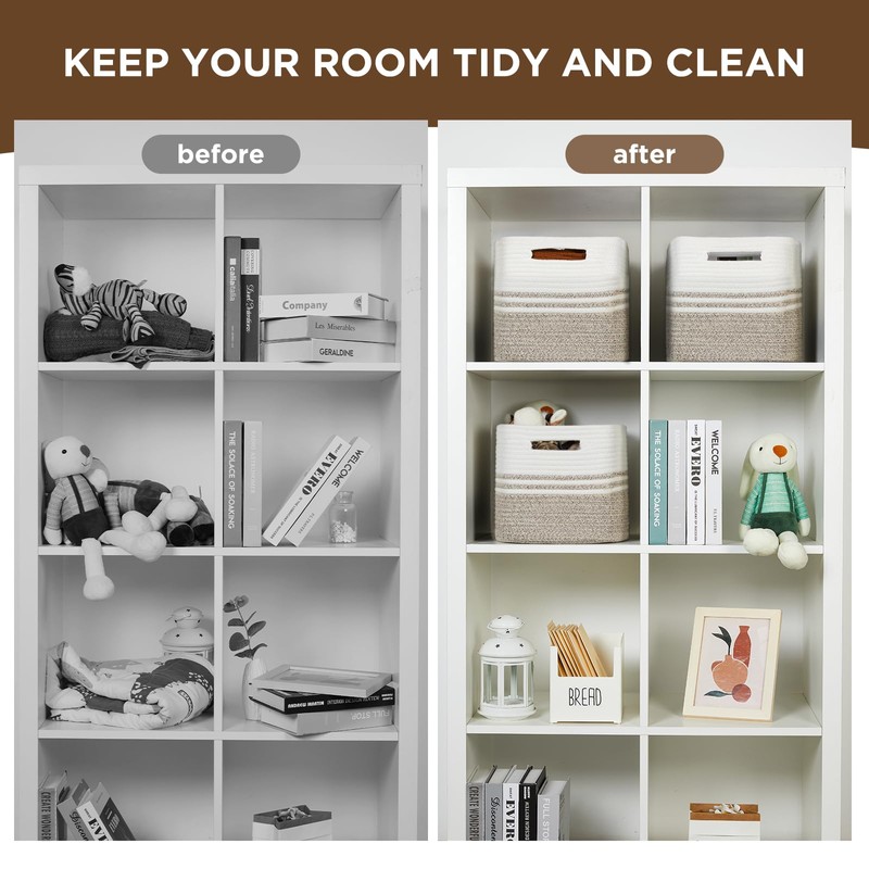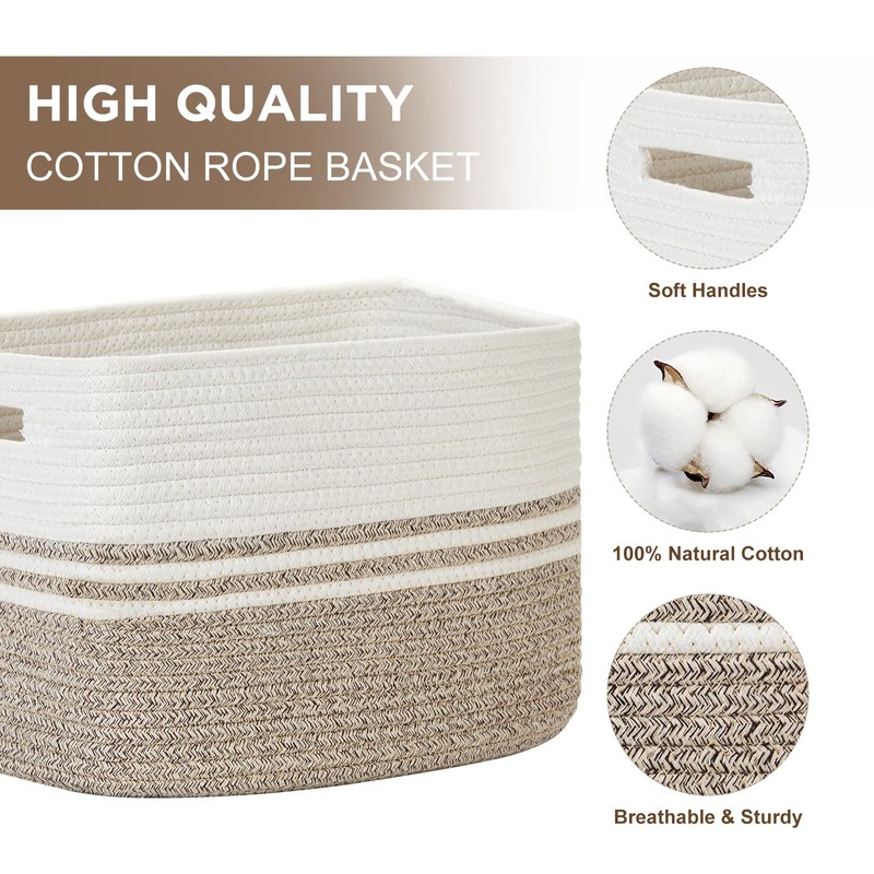 - [Spacious & Versatile Baskets]: Look no farther than our rope basket, measuring a capacious 13"x9.8"x8.5". Perfect for an array of storage needs, this woven basket for storage brings order and style to your space, from clothes to linens.