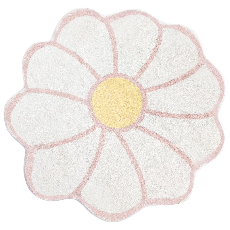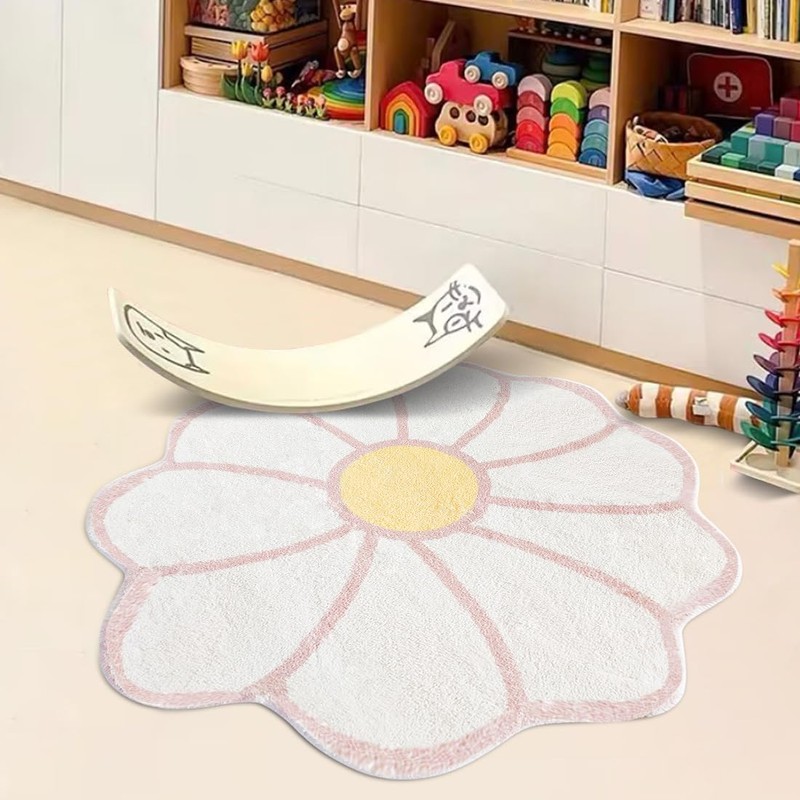 TEMBR Flower Shaped Round Area Rug,Washable Round Soft Floral Area Rugs for Living Room Girls Bedroom Fluffy Circle Nonslip Circular Indoor Floor Mat for Entryway Kitchen-47.2" Round,White&Pink
