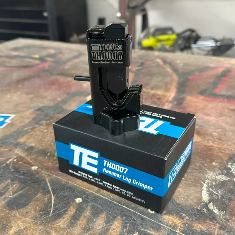 The TEMCo Hammer Lug Crimper is designed for crimping battery and welding cables from 8 AWG to 4/0. This mountable tool provides secure, reliable connections for heavy-duty electrical work.