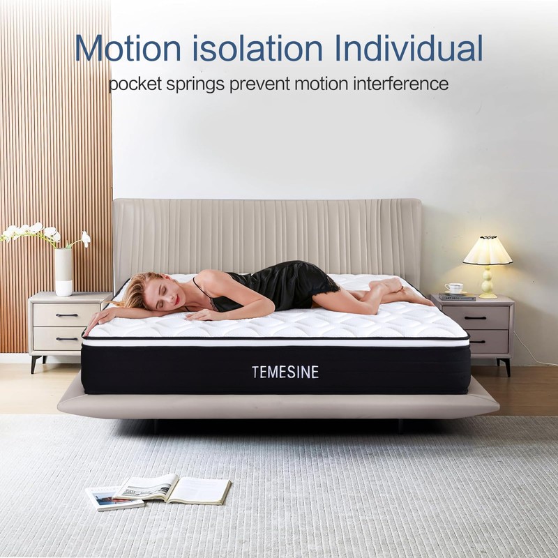 TEMESINE Queen Mattress, 10 Inch Hybrid Memory Foam Mattress in a Box with Pocket Springs, Pressure Relief, CertiPUR-US Certified, Plush Comfort | Queen Size Mattresses & Memory Foam Mattress Toppers