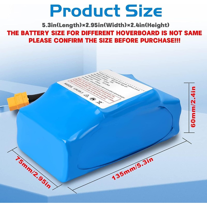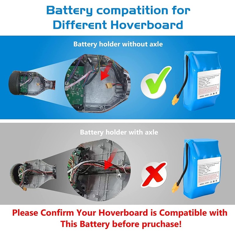 - 🔋 36V 5200mAh/187.2WH Output – Powers hoverboards for 15-18 miles per charge, even on 20° inclines. Built with Samsung/Panasonic cells (-20°C to 65°C stable).