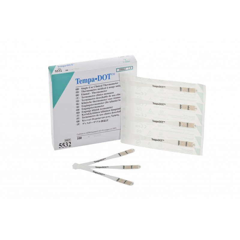 Tempa?DOT Thermometers provide a fast and accurate reading in one minute. The thermometer is specifically designed for high-accuracy and for the prevention of cross-contamination that can expose patients to infections. Tempa?DOT is manufactured under Quality System ISO 13485 (2003); meets European Standard prEN.12470-2; and carries a CE Mark.