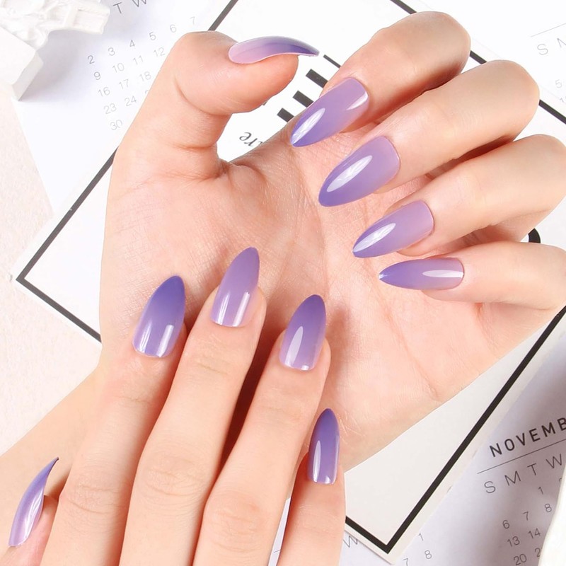 Temperature Color-Changing False Nails – 24PCS Fake Nails with Thermal Effect & Stylish Design, Almond-Shaped Press-On Nails for Women