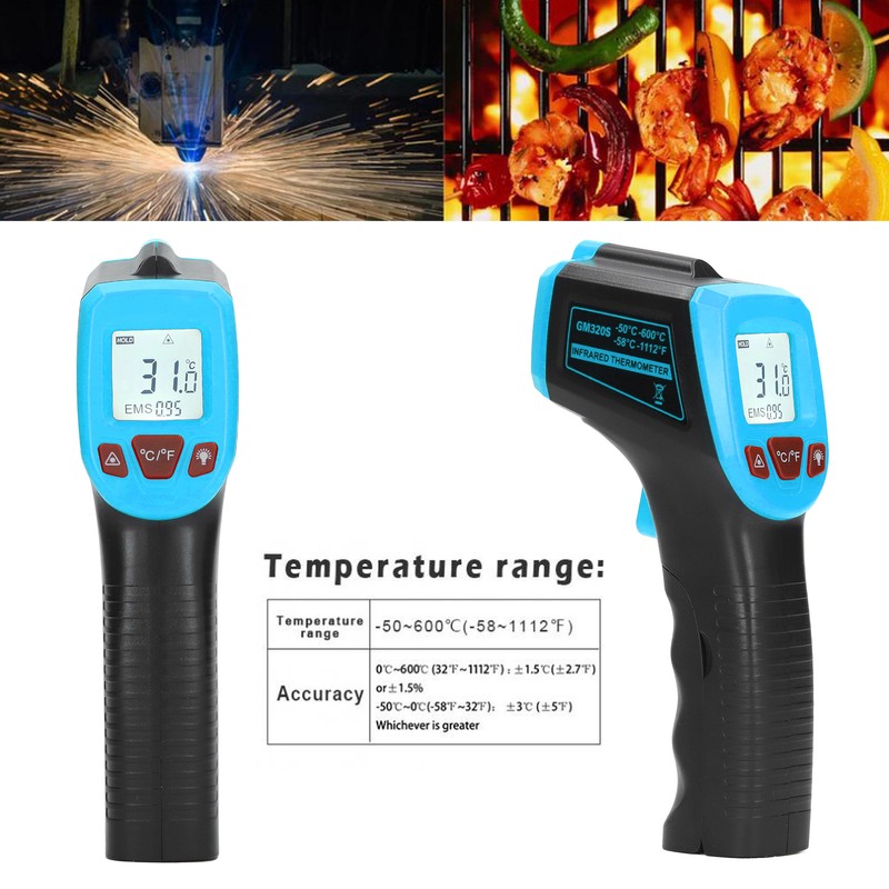 1、[Switchable Units] This temperature gun can choose to display either degrees Fahrenheit or Celsius, smart and convenient. 2、[Handheld Size] This digital temperature measuring gun can be held in one hand, compact and lightweight, easy to use. 3、[Powerful Functions] This temperature measuring gun has a data saving function and laser target pointer switch option. 4、[Automatic Shutdown] When the backlight switch is selected, the power will automatically turn off within 7 seconds without any operation. 5、[Wide Application] Temperature measuring guns can test the temperature of hot water pipes, electrical connections, lamp ballasts, etc.