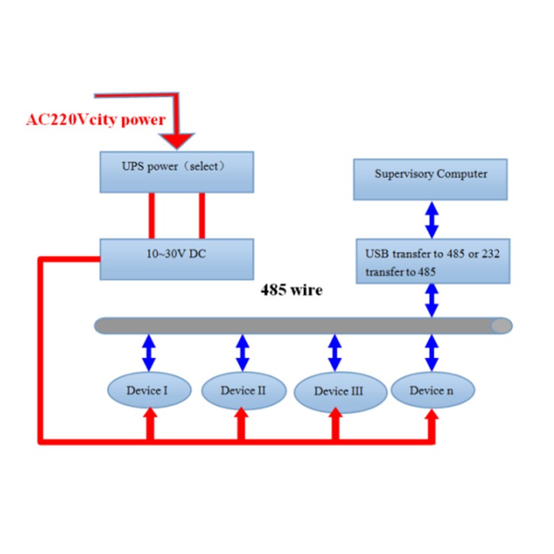 | Note: The device does not provide communication line by default, the line colour is for reference only. | ||