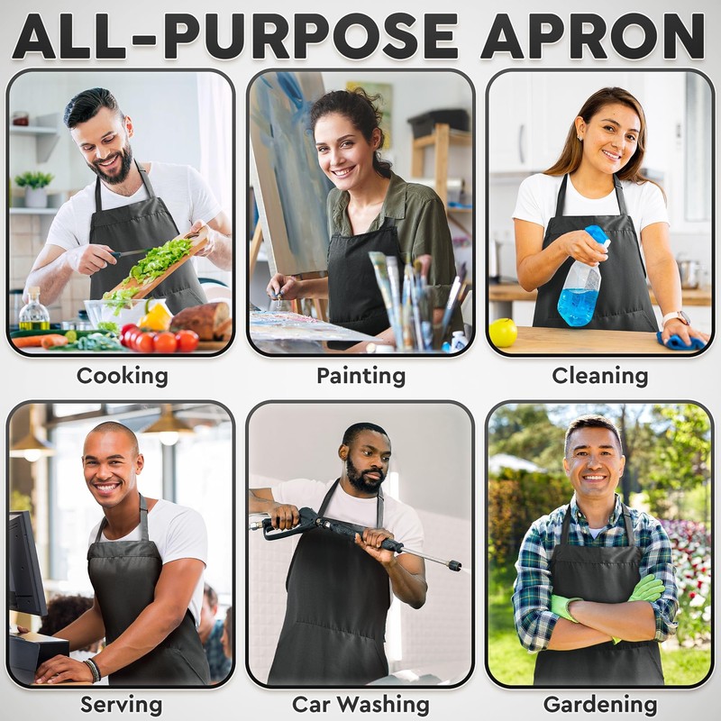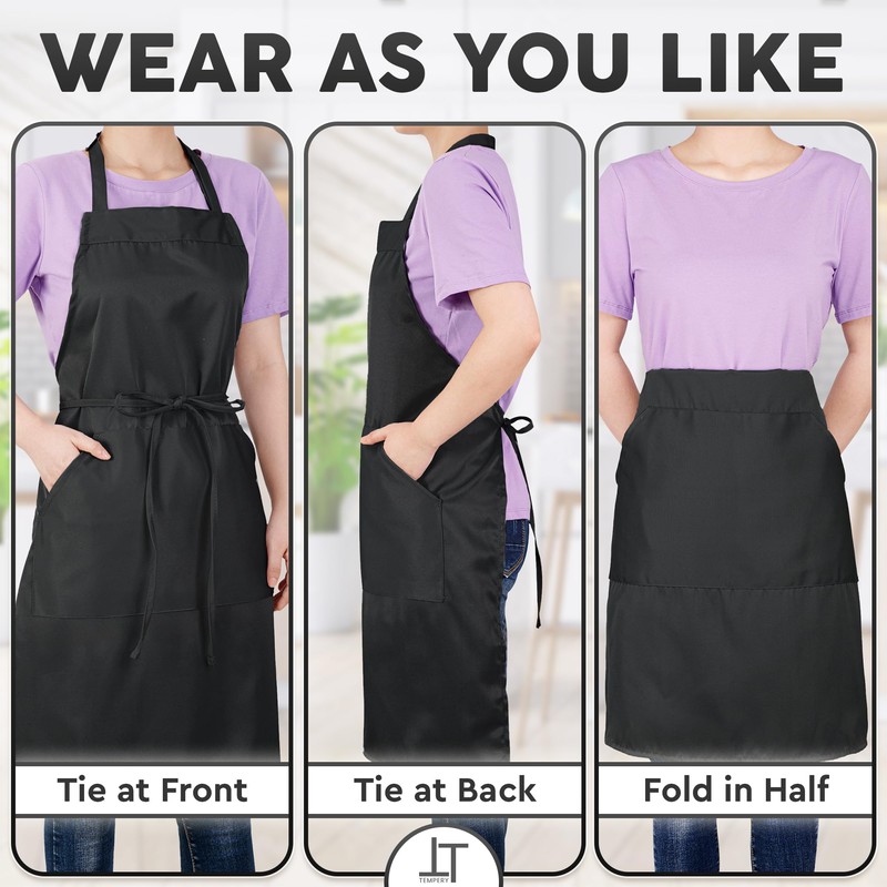- Tempery - Cooking apron men women, cooking apron, kitchen apron men with extra long straps, barbecue apron, apron man women - premium quality, black