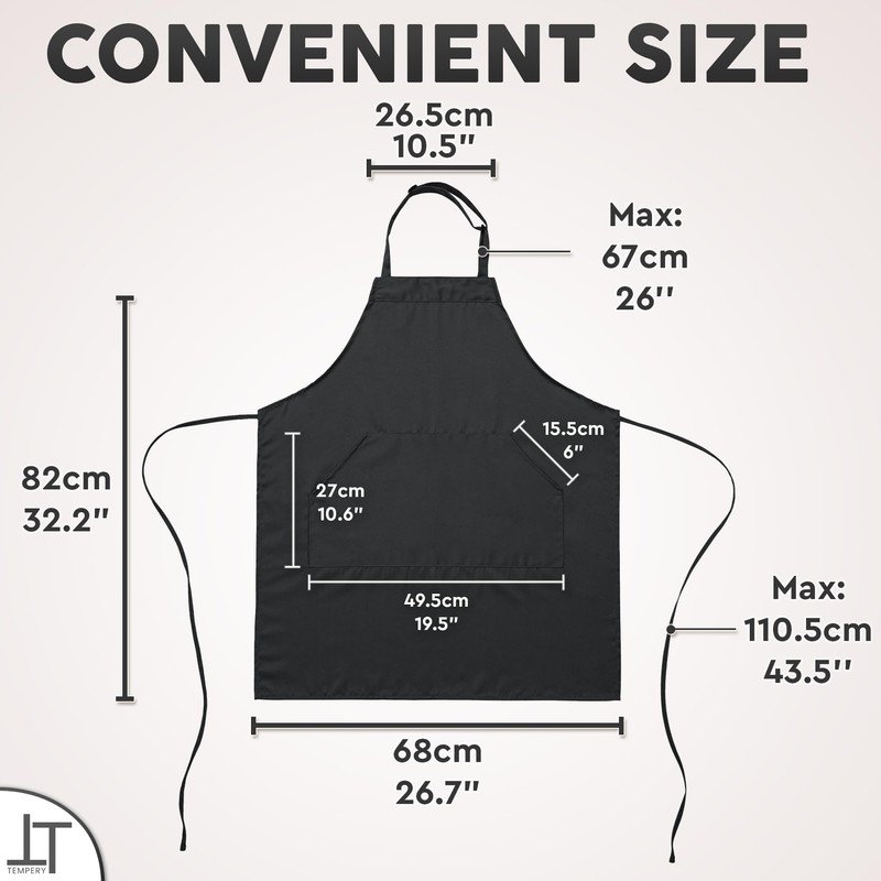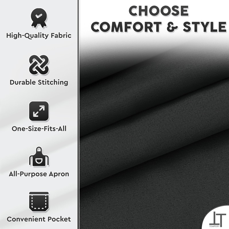Tempery - Cooking apron men and women, cooking apron, kitchen apron men with extra long straps - premium quality, black