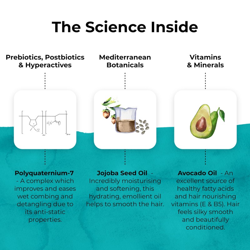 - It is formulated with nourishing ingredients like, jojoba, avocado and mint to nurse split ends and reduce tangling.
