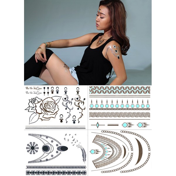 Temporary Metallic Tattoos Pack (Set of 4 Sheets)(Style 4) by BG247