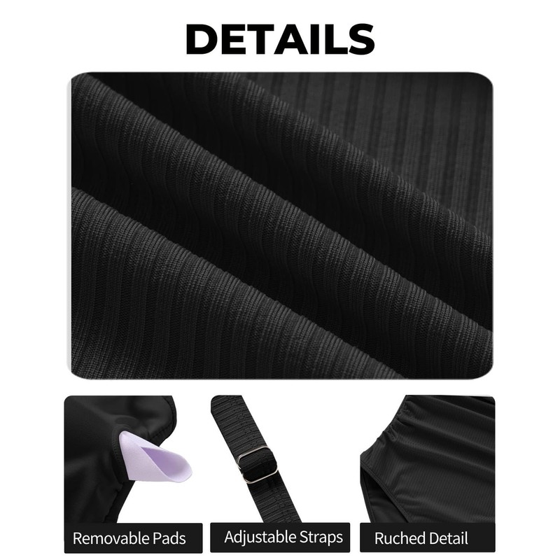 • Ribbed One Piece Swimsuit‌: Stylish ribbed fabric with adjustable straps, chic ‌V-wire and scoop neck‌ details. ‌Removable pads‌ ensure customizable support‌.