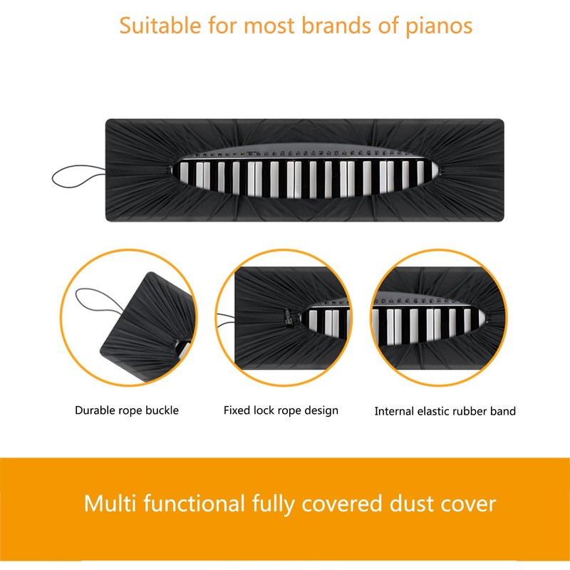 - High quality 88 key piano keyboard cover: Our piano keyboard cover is suitable for 88 keys, and the keyboard cover has an adjustable and tightened rope lock (rubber rope - highly elastic), which can better install your electronic keyboard and effectively prevent it from falling off.