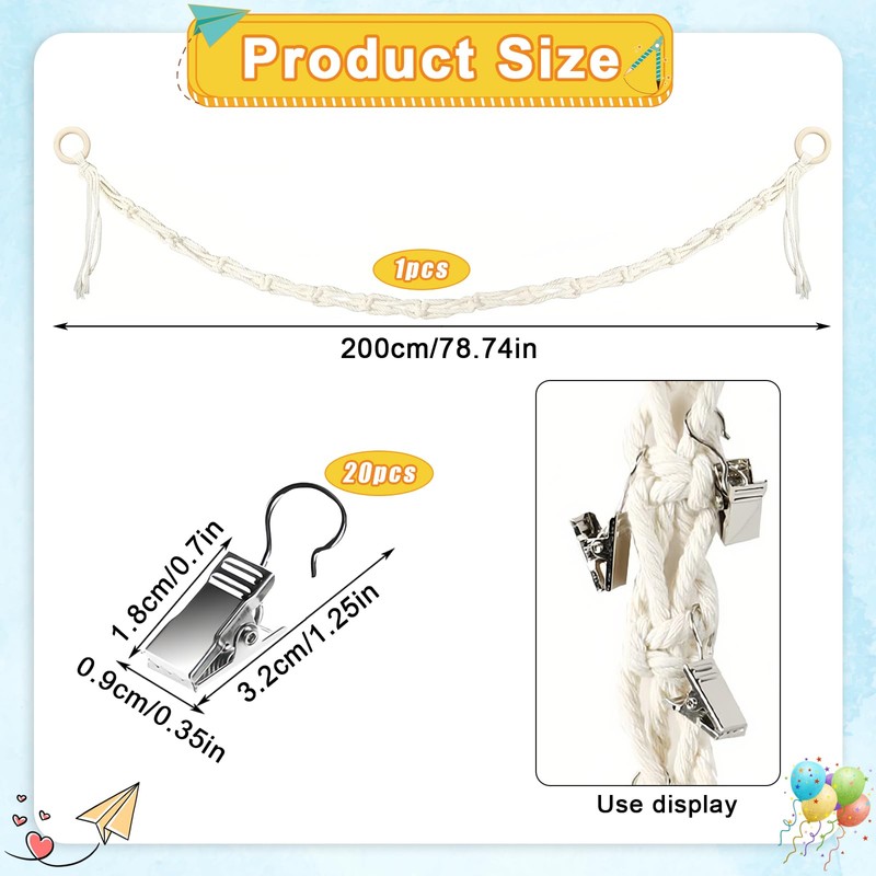 Quantity: 1 rope comes with 2 loops and 20 clips