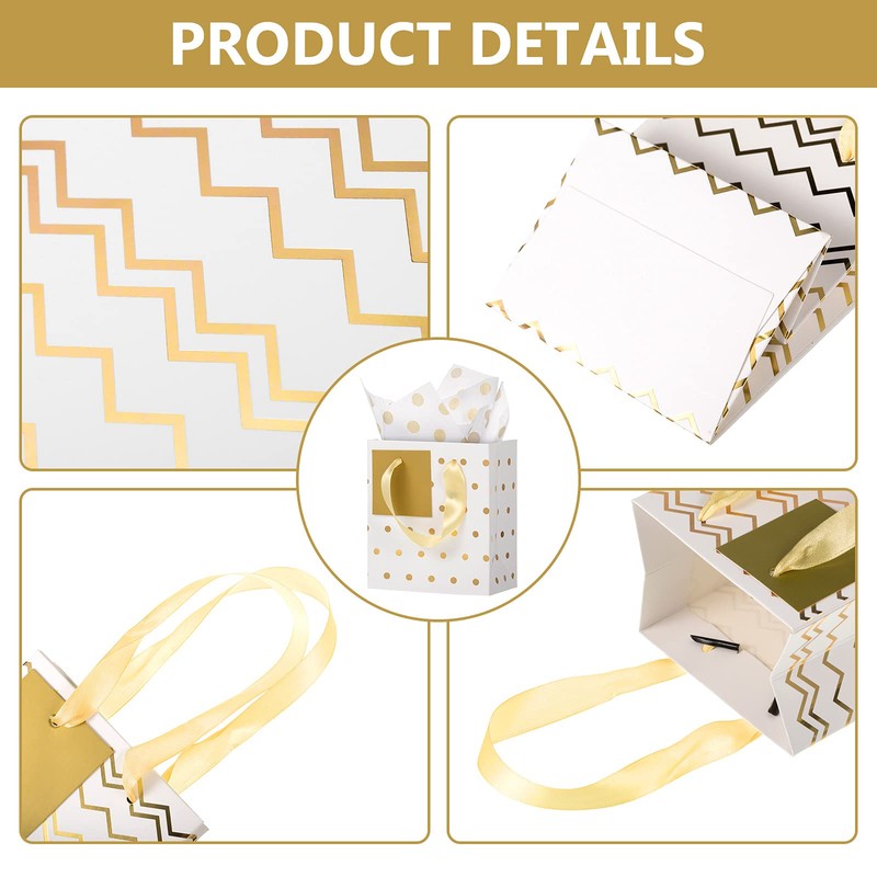 - Gift Wrapping Set Includes: this package insists of 12 pieces metallic paper bags and 12 pieces Christmas tissue wrapping papers, which will meet your different needs and are enough for you to complete a festival or birthday gift wrapping