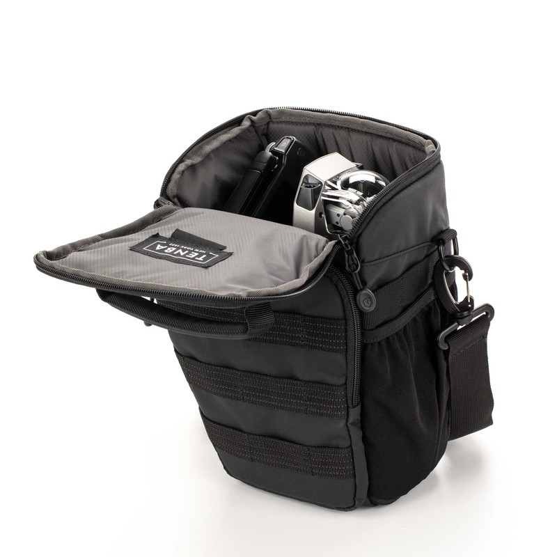 - Correa Molle reflectante: permite una expansión ilimitada con cápsulas de lente Tenba Tools, bolsas de batería y carteras para tarjetas de memoria, así como bolsas y accesorios estándar militares. La capacidad de engranaje se puede casi duplicar simplemente conectando una cápsula de lente Tenba a la correa lateral Molle.