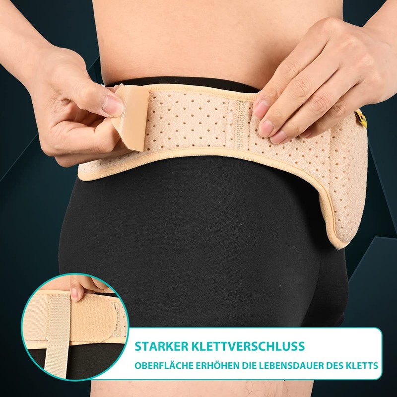 • Easy to put on and take off: simple and fashionable open design, easy to put on and take off. The Velcro fastener can be attached anywhere on the entire hernia belt, the degree of tightness can be quickly and easily adjusted by changing the adhesive position of the Velcro without damaging the clothes. Without crimping deformation and not easy to lose elasticity after prolonged use.