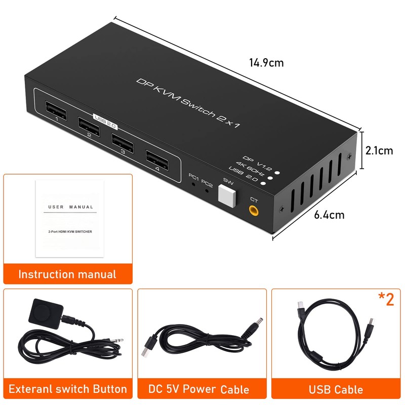 - 1 x 4K DP KVM 2x1 Switcher