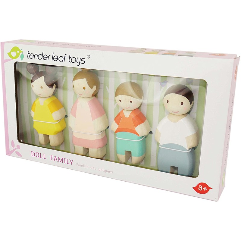 Tender Leaf Toys - The Leaf Family - Happy Wooden Family Dolls Playset Figures of 4 People for Children Kids Pretend Play Doll House
