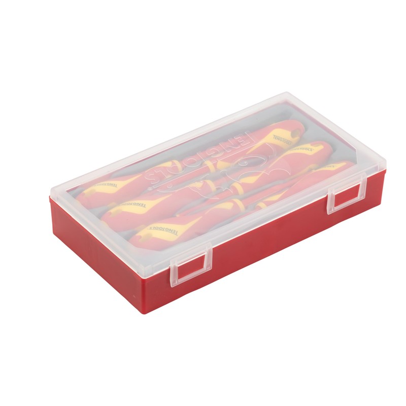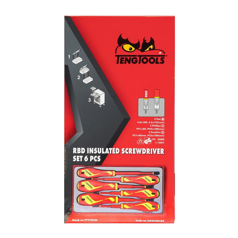 Teng Tools 6 Piece 1000 Volt Flat (Slotted), Phillips (PH), Pozidriv (PZ) Insulated Screwdriver Set | Electricians Tool | Insulated Tool | Electrical Tool - TTV706N