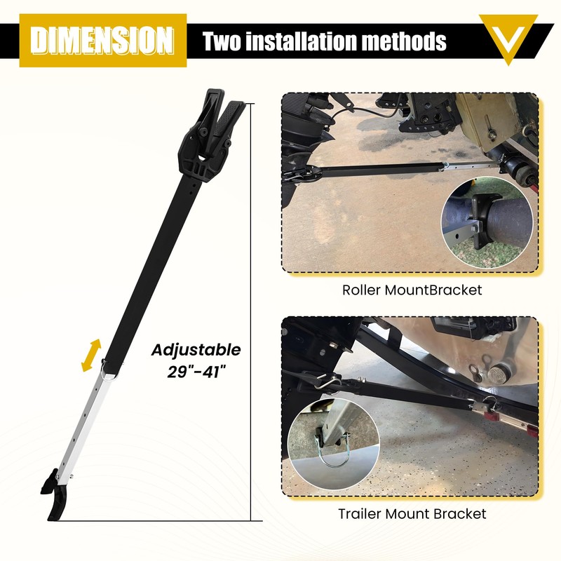 - Heavy-Duty Design: With its robust aluminum material and composite head, this product is strong enough to support outdoor motors mounted far away from the boat trailer.