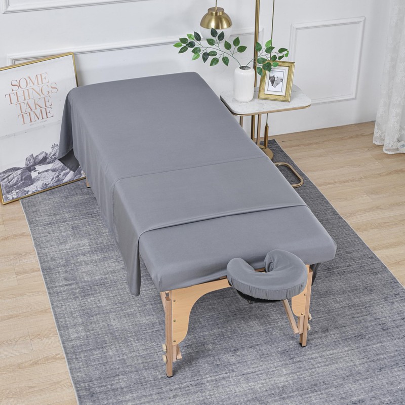 - Microfibre cover set for massage loungers: the 3-piece, silky set contains a generous fitted sheet, a head cushion cover with Velcro closure for a secure hold and a matching sheet.