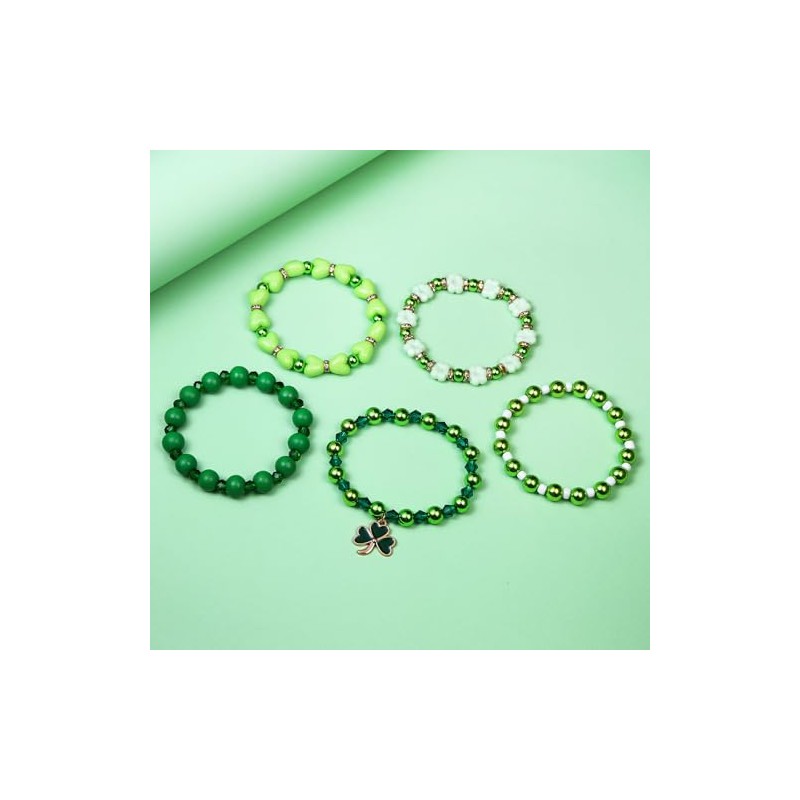 tenghong2021 Boho Green Clover Pendant Lucky Bracelet Set for Women Holiday Beaded Heishi Stackable Bracelets Set St.Patrick's Day Stretch Charm Bracelet Friendship Festive Jewelry-B